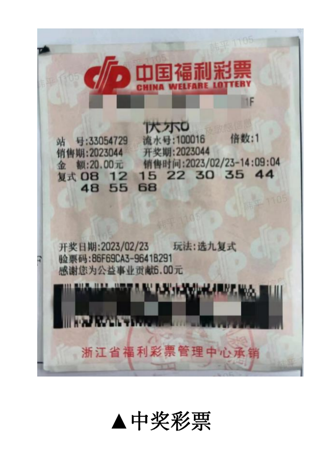 2月24日上午,市福彩中心迎来了两位中年男子,手拿一张中大奖的彩票到福彩中心进行兑奖,他们投注的第2023044期 “选九复式”玩法的“快乐8”彩票喜中大奖、共收获奖金318000元, 此次中出的站点为安吉县杭垓镇吉华路264号33054729号福彩投注站。