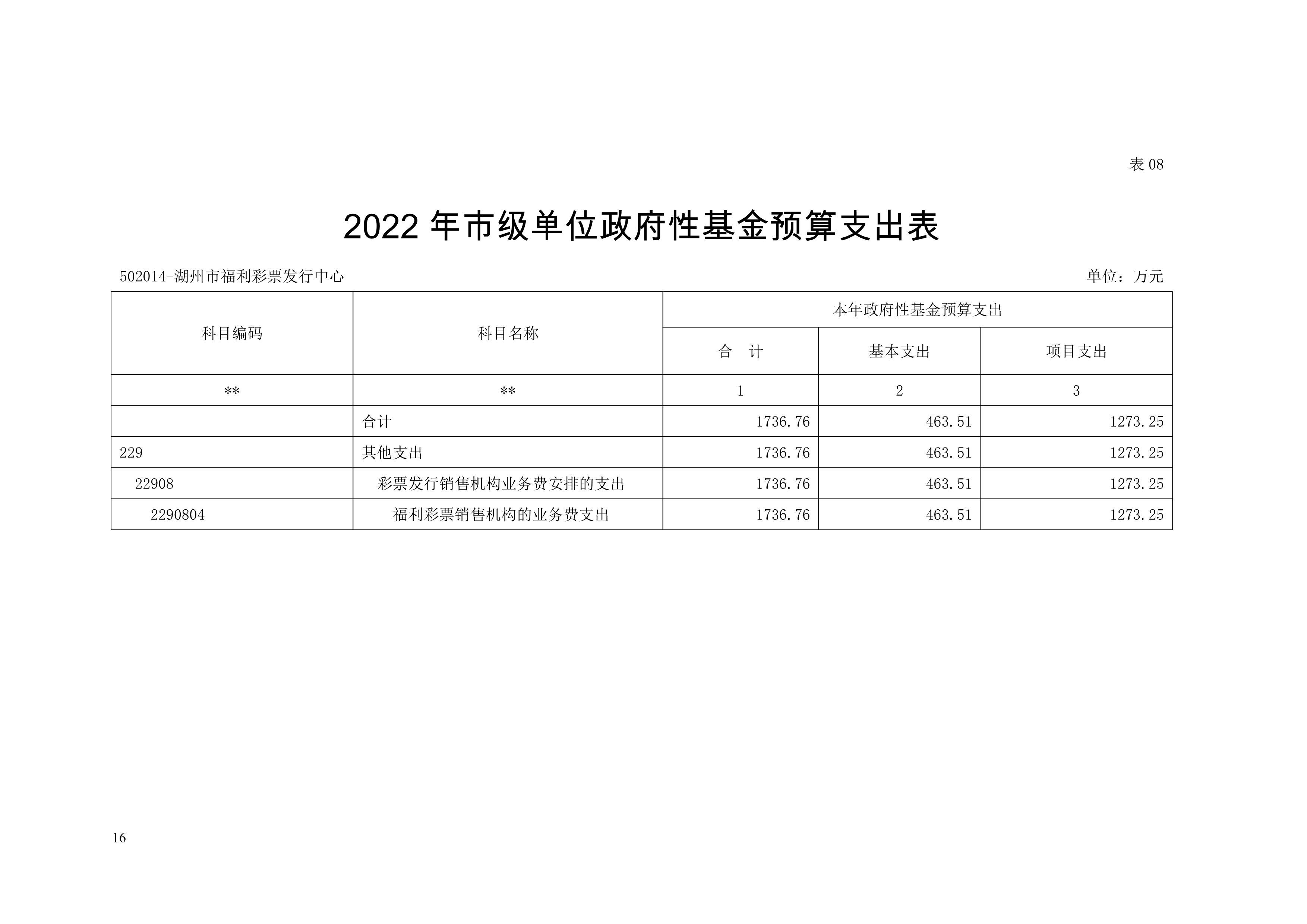 湖州市福利彩票发行中心2022年单位预算